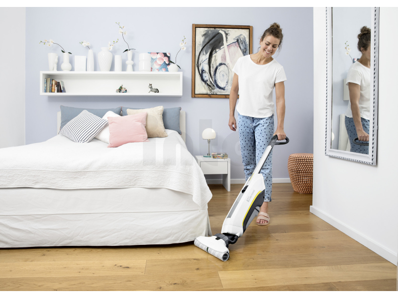 Podlahový mycí stroj KÄRCHER FC 5 s jednoduchou manipulací a obsluhou. Nová technologie umožnuje čištění v jednom procesu, stroj vytírá mokré i suché nečistoty za pomocí mikrovláknového válce. Znečištěná voda je odsávána a válce zůstávají čisté pro další čištění, tímto způsobem se šetří až 85 % vody a prostředků oproti běžných technologiím s lepším čistícím výkonem.
