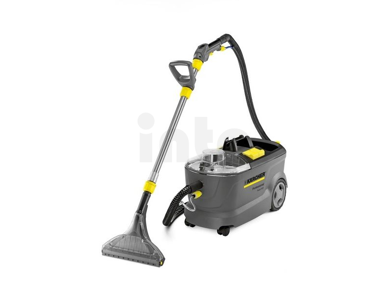 Nový inovovaný model čističe koberců a čalounění KÄRCHER Puzzi 10/1. Pro střední plochy pro živnostenské použití i pro použití v domácnostech. Nádrž na čistou vodu s filtrační vložkou umožňuje velké pracovní intervaly a chrání čerpadlo před znečištěním. Kompaktní a robustní kryt z plastu - nárazuvzdorný, odolný proti prasknutí, snadné přenášení. Dvě velká kola pro bezproblémovou přepravu a dvě malá řídící kolečka pro velkou pohyblivost stroje. Tlačítka pro nástřik a odsávání se nachází na horním díle stroje - bezproblémová obsluha. Snadno snímatelný, průhledný sací kryt pro optickou kontrolu. Vyjímatelný modul čerpadlo/turbína uložený v gumovém obložení. Nádrž na špinavou vodu s objemem 9 l. snadno vyjímatelná. Zbytková vlhkost 3, %.