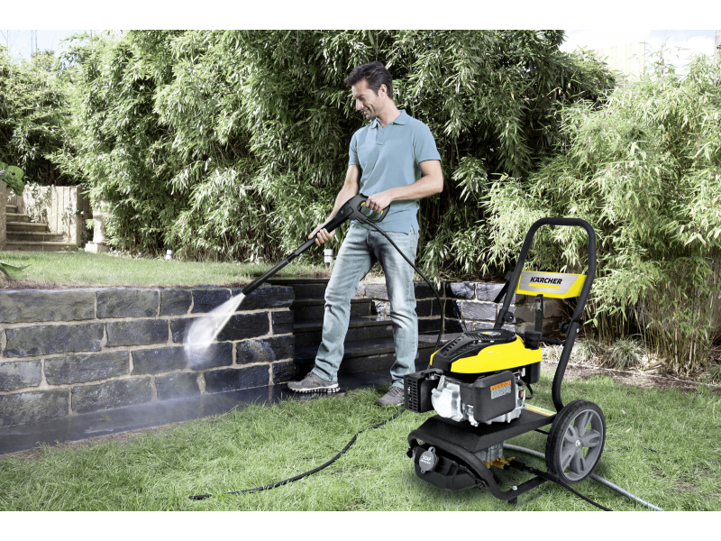 Vysokotlaký čistič s benzinovým motorem je nezávislý na elektrické energii a můžete s ním skvěle pracovat ve venkovních prostorech, kde nejsou zásuvky na elektriku.