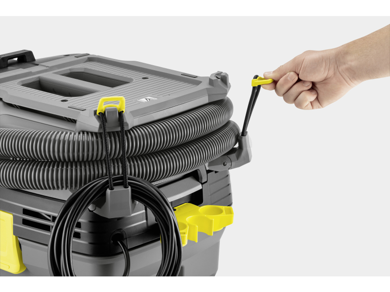 • Umožňuje bezpečné zajištění hadic různých délek a průměrů. Uložení síťového kabelu bezpečné pro přepravu.