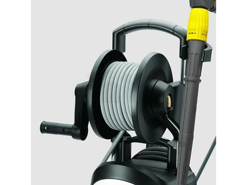 Známým znaky vybavení Kärcher strojů je plné opláštění z plastu odolného proti nárazům, které chrání vysokotlaké čerpadlo a motro před poškozením a nečistotami. Velmi dobré a praktické je navíjení elektrokabelu (s fixací zástrčky) na zadní straně stroje a přihrádka na trysky.