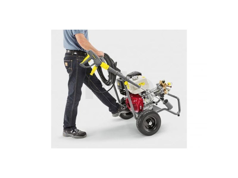 Vysokotlaké čerpadlo, vyrobeno z kvalitních a odolných materiálu, je poháněno benzínovým motorem Honda 4 kW / 5,5 PS. Možnost plynulé rregulace čisticího prostředku pro jeho úsporu. Vestavěný bezpečnostní ventil zajišťuje bezpečnou ochranu přístroje před přetížením tlakem. Tepelné čidlo na hlavě válce automaticky vypne motor, když se zvýší teplota v oběhovém režimu. Stroj je umístěn na šasí se dvěma bantamovými koly. Se strojem je tak podstatně snadnější manipulace. Startování se provádí pomocí startovacího lanka.