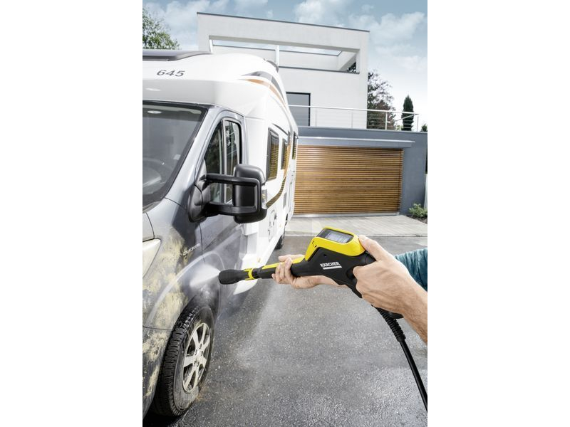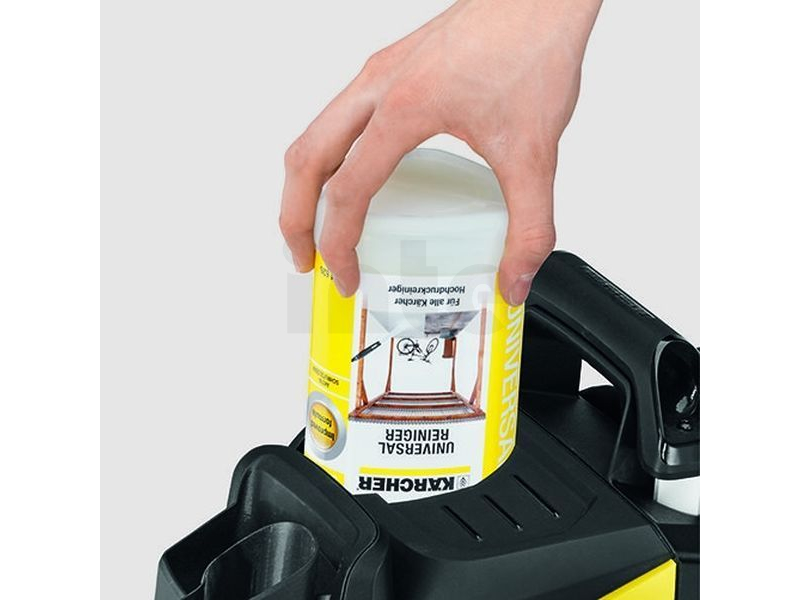 Typ paprsku nastavíte pohodlně pootočením na pracovním nástavci 3-v-1 Multi Jet a regulujete tlačítky +/- pro maximální kontrolu. Tak není zapotřebí výměna pracovního nástavce - ani při přechodu z vysokotlaku na stupeň čisticího prostředku. Při krátkých přerušeních můžete pistoli a pracovní nástavec jednoduše odložit. Díky vysouvacímu teleskopickému madlu lze stroj pohodlně přepravovat a kompaktně uložit. S praktickým systémem Plug ´n´Clean vyměníte čisticí prostředek jedním pohybem ruky a rozpoznáte stav naplnění na první pohled. Dále přesvědčí vysokotlaký čistič nízkým těžištěm, praktickým vedením hadice a opěrnou nohou, která zajišťuje větší stabilitu a lze ji použít také jako druhé madlo. Tato tlaková myčka je vhodná pro častější používání na zvlášť úporné nečistoty a plošný výkon 60 m2/h.