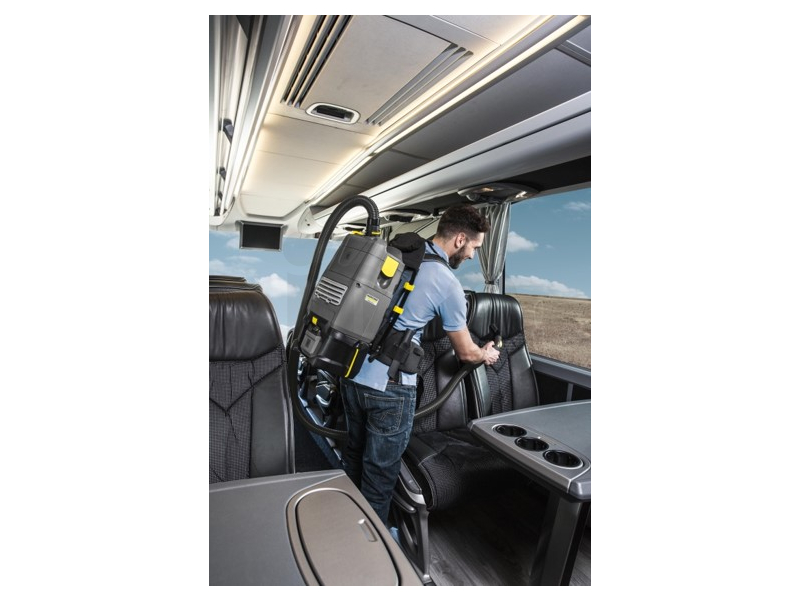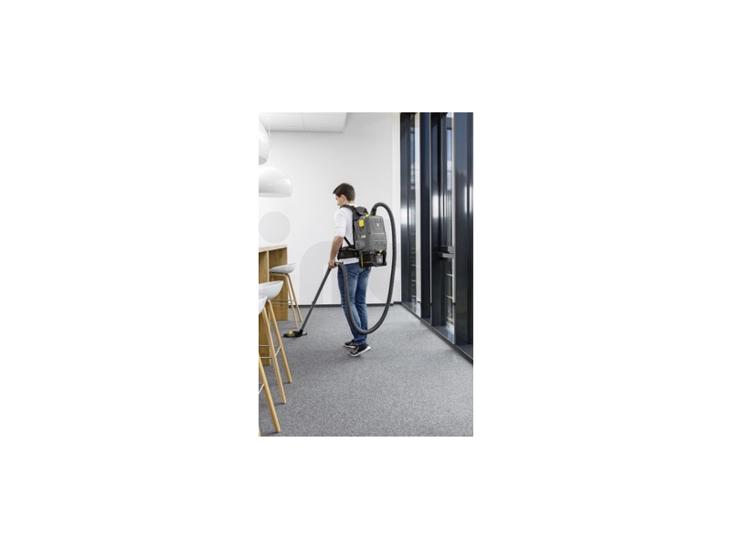 Vysavač na záda KÄRCHER BV 5/1 Bp s prodlouženou dobou práce na 46 min na nabití baterie. Výkonný se stejným výkonem jako běžné sítové vysavače.
