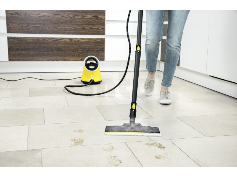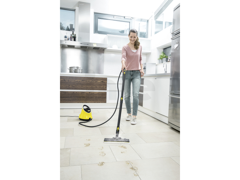 Parní čistič KÄRCHER SC 2 Dealuxe EasyFix základní třídy. Výkonný parní čistič vhodný do domácnosti. Optimalizovaná podlahová hubice zaručuje ideální výkon čištění, neboť nečistoty jsou pojímány celou plochou hubice.