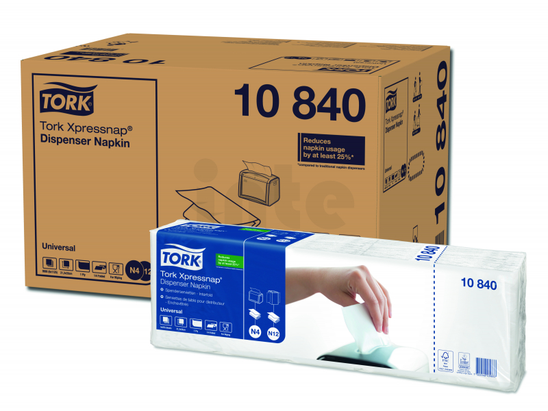 Systém vám pomůže snížit spotřebu ubrousků o 25 % v porovnání s tradičními zásobníky na ubrousky. Jednovrstvé bílé ubrousky do zásobníku TORK Xpressnap® jsou ideální pro podniky s velkou návštěvností, které dbají na provozní náklady.