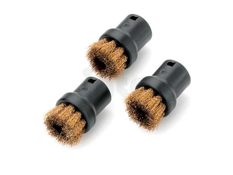 Sada kruhových kartáčků s měděnými štětinami 3 ks. Pro snadné odstranění silně ulpívajících nečistot, nánosů na roštu krbů. Nehodí se pro choulostivé povrchy.