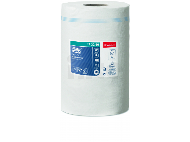 Tuto papírovou utěrku lze používat v TORK Mini Reflex™ zásobníku na role se středovým odvíjením s dávkováním po jednom útržku, který se přizpůsobí pracovním tokům Vašeho týmu, snižuje spotřebu a riziko křížové kontaminace.
