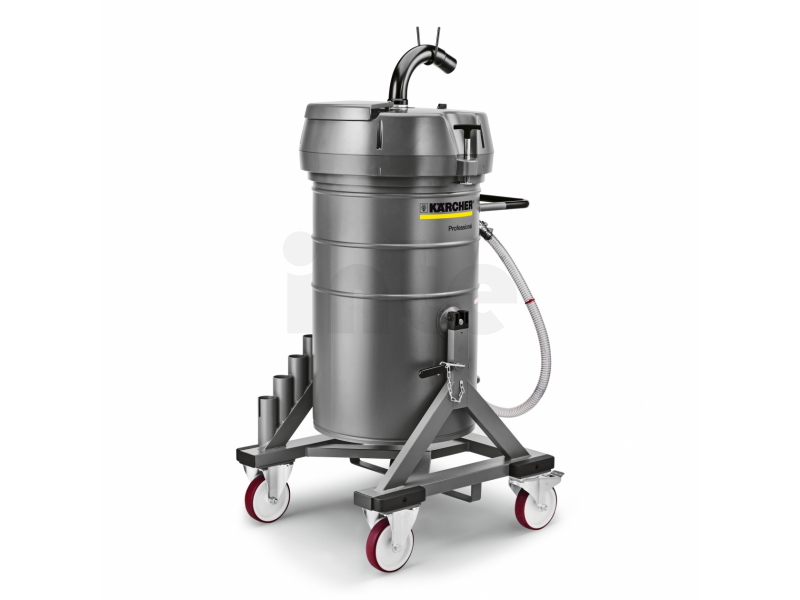 Průmyslový vysavač KÄRCHER IVR-L 120/24-2 Tc typu Ringler s kompaktní konstrukcí. Je nejvhodnější pro oddělování chladicích a mazacích prostředků a špon. Tento vysavač s dlouhou životnostní získává se svou robustní konstrukcí, oleji vzdornými koly a svým oleji vzdorným síťovým kabelem body jako pomocník při použití v každodenních nejdrsnějších průmyslových podmínkách. Přístroj disponuje sklopným podvozkem a velkorysou sběrnou nádrží o objemu 120 litrů - je tak ideální pro vysávání velkých množství tekutin a/nebo z velké části bezprašných pevných látek jako např. špon. S volitelně dodávaným košem na špony mohou být pevné látky důkladně odděleny od vysáté tekutiny. Pro obzvláště flexibilní práci bez zamotávání se hadice je zodpovědná přípojka hadice na sací hlavě, která je otočná o 360°. Stav naplnění se dá kdykoliv pohodlně odečíst na vypouštěcí hadici. Vypouštění může být provedeno dvěma způsoby: zaprvé přes vypouštěcí hadici, zadruhé prostřednictvím sklopného podvozku. I naložení na vysokozdvižný vozík je bez problémů možné.