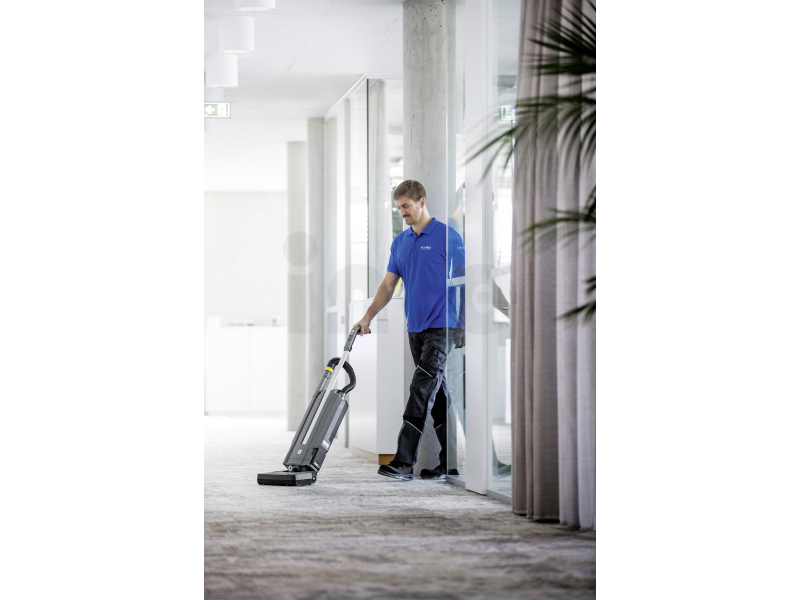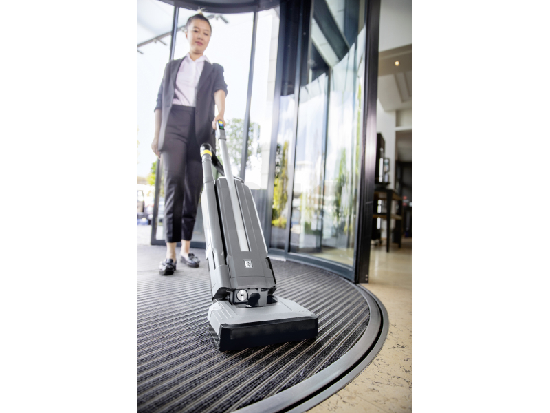 Prvním bateriový upright kartáčový vysavač KÄRCHER CV 30/2 Bp, s objemem nádoby 3 litry pro profesionální čištění všech kobercových a tvrdých ploch. Díky automatickému rozpoznání podlahy se dokonale přizpůsobí podlahové krytině. Výkonný kartáč čistí do hloubky vláken textilních podlah a viditelně je rovná. Díky jeho mimořádně nízké světlé výšce můžete čistit s kompaktním a obratným akumulátorovým kartáčovým vysavačem bez námahy i pod postelemi a ostatním vybavením. Díky tomu je vhodný pro pracovníky úklidových firem při čištění v budovách nebo v hotelnictví. Další výhodu představuje rychlá a hygienická funkce samočištění kartáčového válce. Vlasy zachycené kartáčovým válcem se oddělí stisknutím nožního pedálu a zbytky automaticky odsají. Kartáčový vysavač CV 30/2 Bp bez překážejícího kabelu je koncipován velmi přívětivě pro uživatele a disponuje inovativní rukojetí vybavenou vypínačem, režimem eco!efficiency a LED displejem se zobrazením zbývajícího času baterie. U tohoto provedení doporučujeme samostatně objednat výkonnou baterii Kärcher Battery Power+ a příslušnou nabíječku. Navíc můžete zvolit vysoce účinný filtr HEPA 14.