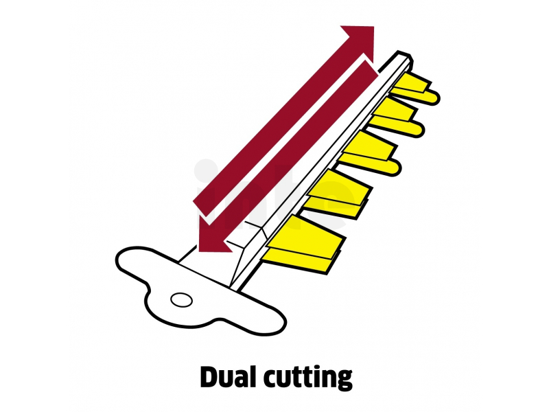 - Obzvláště praktické u živých plotů s jednotlivými silnějšími větvemi je funkce řezání.