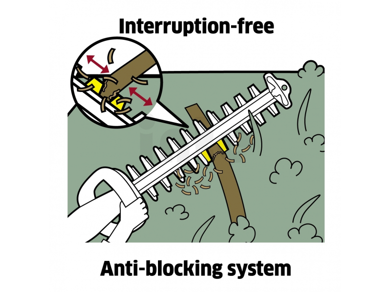 - Bezpečnostní zapínání dvěma rukama zamezí neúmyslnému spuštění plotových nůžek.