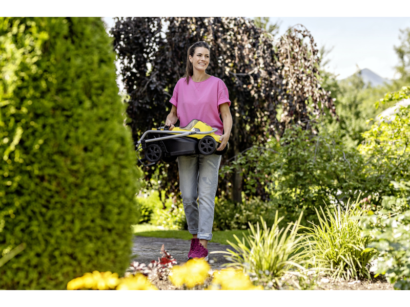 Aku rotační sekačka Kärcher LMO 2-18 je perfektní volbou pro údržbu menších trávníků do 250 m². Díky šířce záběru 32 cm a výkonnému bezuhlíkovému motoru zajišťuje přesné a efektivní sečení. Výšku sečení lze jednoduše nastavit na jednu z pěti úrovní v rozmezí 25 až 60 mm. Hřebeny na okrajích sekačky umožňují dokonalé sečení i podél hran trávníku. Sběrný koš na trávu má objem 30 litrů a indikátor naplnění. Výškově nastavitelná rukojeť umožňuje pohodlnou práci, zatímco skládací design a nízká hmotnost sekačky zajišťují snadné skladování a přenášení. Zařízení je kompatibilní s 18V bateriemi Kärcher Battery Power, které nejsou součástí balení.