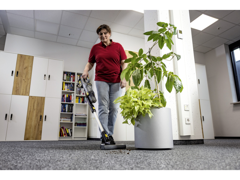 Aktivní podlahová hubice a dodávaná štěrbinová hubice zajišťují efektivní úklid i v těžko přístupných místech. HEPA 13 filtr zachytí až 99,995 % jemných částic, což splňuje nejvyšší hygienické požadavky.