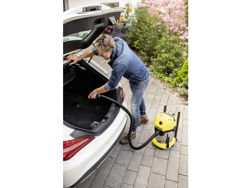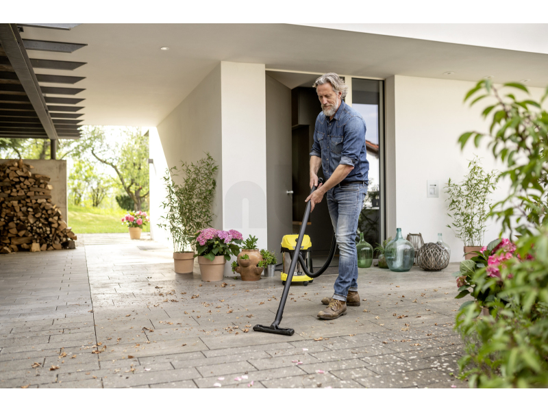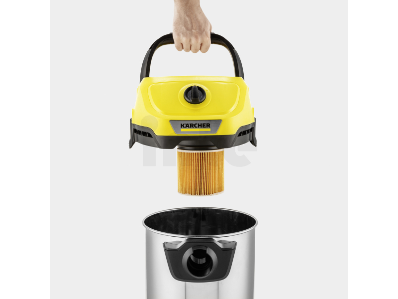 Zařízení je také vybaveno robustní a nárazuvzdornou nádobou z nerezové oceli o objemu 17 litrů, jednodílným kartušovým filtrem a fleecovým filtračním sáčkem. Sací hadici lze jednoduše uložit na hlavu zařízení, čímž se šetří místo.
