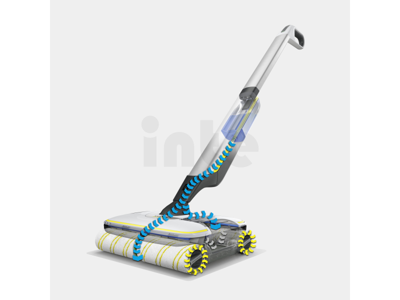 • Praktické pro přerušení práce: zařízení stojí samostatně. Jednoduché čištění pod nábytkem a okolo předmětů. Čtyři protiběžné válce zajišťují jemné a snadné klouzání po podlaze.