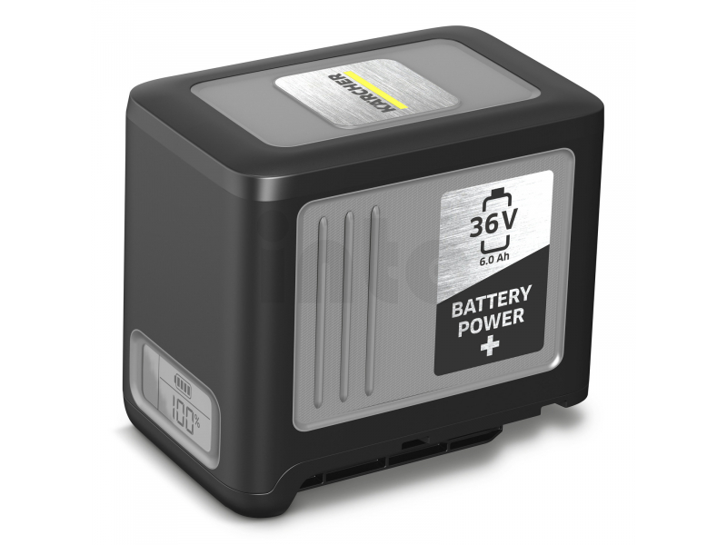 Lithium-iontová baterie Kärcher + 36 je kompatibilní s veškerou AKU technikou Kärcher v platformě 36 V. Zaujme jak svým neuvěřitelným výkonem, tak dlouhou dobou provozu díky kapacitě 6,0 Ah. Kromě toho však disponuje také další rozsáhlou výbavou a bezpečnostními prvky. Například efektivní řízení teploty zaručuje bezpečnou regulaci tepla baterie, tedy maximální bezpečnost i při nejvyšším výkonu baterie. Dále je AKU baterie vybavena robustním, nárazuvzdorným krytem, který ji velmi účinně chrání i před vodou v souladu s IPX5. Integrovaná kontrolka napětí s nadproudovou ochranou zabraňují poškození článků způsobeným přepětím, silným vybitím a nadměrným proudem. Inovativní Real Time Technology umožňuje uživatelům sledovat na LCD displeji přesné hodnoty na baterii: doba provozu, doba nabíjení a úroveň nabití.