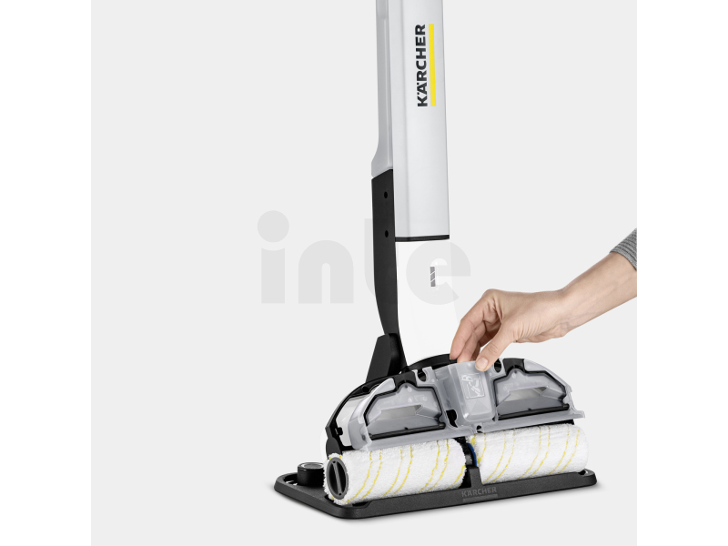 - Systém dvou nádrží: trvalé smáčení válečků z nádrže na čerstvou vodu, zatímco se nečistoty shromažďují v nádrži na odpadní vodu. Bez námahy: žádné tahání kbelíku, ždímání hadrů nebo drhnutí povrchů. Válečky lze prát v pračce při 60 °C.