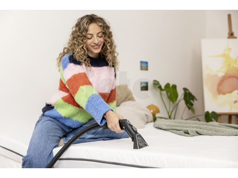 • Stříkací extrakční hubici na čalounění lze použít k rychlému a snadnému vyčištění usazených nečistot, zatímco stříkací extrakční hubice na štěrbiny usnadňuje čištění obzvláště těžko přístupných míst. Integrovaná stříkací hadice pro větší pohodlí při čištění. Dlouhá, vysoce flexibilní sací hadice pro větší pohodlí při čištění.