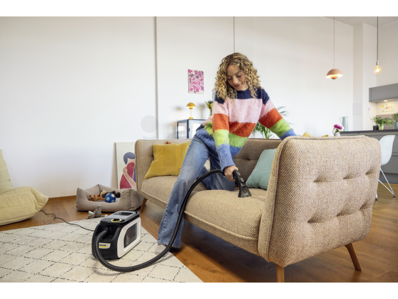 S novým výkonným tepovačem KÄRCHER SE 3 Compact Home vyčistíte čalounění nábytku nebo autosedaček do hloubky vláken.