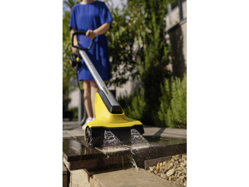 Díky optimalizované šířce a poloze válcových kartáčů je možné čistit až po okraje. Pro výměnu válcových kartáčů nejsou potřeba žádné nástroje, což umožňuje snadné a důkladné čištění hladkých kamenných dlaždic vedle dřeva a WPC.