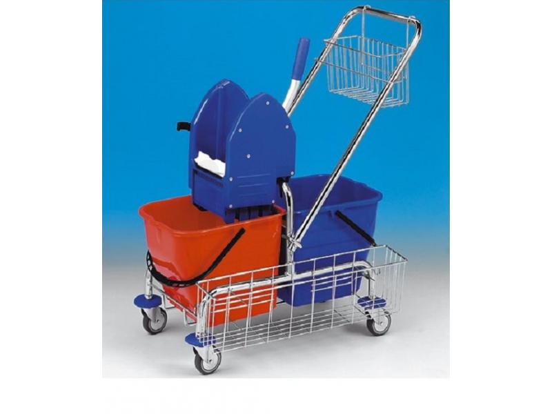 Úklidový vozík se dvěma kbelíky 17 l na oddělení čisté a znečištěné vody. Včetně ždímače.