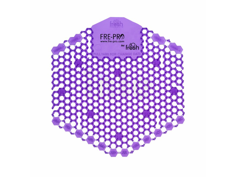 Produkt Wave 3D od řady FRE-PRO je vonné gelové sítko v fialové barvě, které je určeno pro pisoáry a má oboustranný design. Jeho šestiúhelníkový tvar se speciálně řešenými otvory umožňuje náhled do odpadových cest, což redukuje rozstřikování moči a úpravu pisoáru čistý. To vede k úspoře času při údržbě až o polovinu.