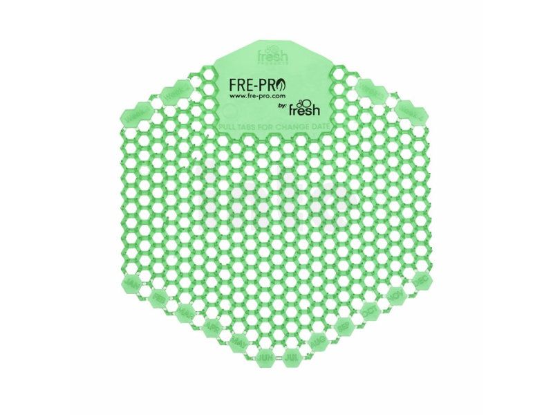 Produkt Wave 3D od řady FRE-PRO je vonné gelové sítko v světle zelené barvě, které je určeno pro pisoáry a má oboustranný design. Jeho unikátní šestiúhelníkový tvar s speciálně řešenými otvory umožňuje náhled do odpadových cest, což redukuje rozstřikování moči a udržuje pisoár čistý. To vede k úspoře času při údržbě až o polovinu.