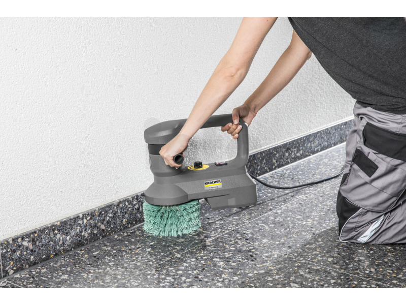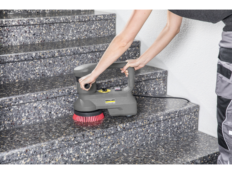 Díky kompaktním rozměrům (33 cm x 17-20 cm x 29 cm) lze síťový mycí stroj KÄRCHER BD 17/5 C použít také v oblastech, kde klasické čisticí stroje nelze kvůli velikosti použít, a ruční čištění je stále drahé. Správci služeb, komerční nebo komunální uživatelé, kteří pracují v těchto oblastech, najdou v tomto stroji vhodné řešení. Snadno přístupné ovládací prvky na boku zaručují rychlou a pohodlnou manipulaci. S regulátorem otáček (0 - 450 ot / min) a odpovídajícím příslušenstvím může být stroj optimálně přizpůsoben každému čištění: například hluboké čištění, krystalizace nebo leštění tvrdých oblastí nebo šamponování koberců. Speciálně pro čištění schodiště je současné čištění vodorovných a svislých ploch příjemnou úlevou, která šetří čas, energii a náklady. Tělo stroje je vyrobeno z odolného plastu odolného proti nárazu. Kartáč disku nebo deska pohonu destičky lze snadno vyměnit během několika sekund. Díky dvěma držadlům lze bezpečně řídit a obsluhovat stroj o hmotnosti 5 kg.