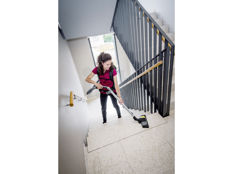 Bateriový zádový vysavač KÄRCHER BVL 5/1 Bp je první vysavač, který díky inovativnímu materiálu EPP (extrudovaný polypropylen) váží pouze 4,6 kg. Použitý materiál velmi dobře pohlcuje opakující se nárazy, je lehký, pevný, má velmi dobrou rozměrovou paměť a je odolný vůči vodě i běžným chemikáliím.