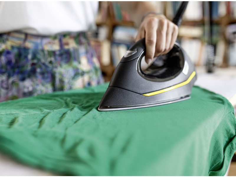 Žehlení s napařovací žehličkou KÄRCHER EasyFinish je velmi snadné a efektivní díky keramickému porvchu a trvale vysokému tlaku páry. Lze užetřit až 50% času oproti žehlení s běžnou žehličkou. Ale nejen tlak šetří čas: Díky optimálnímu automatickému nastavení teploty pro různé žehlené materiály již není třeba obtížná manuální regulace teploty, tak obtížné předcházející třídění prádla. Tato kompaktní žehlička navíc zaujme svou mimořádně snadnou obsluhou a zajímavým černým designem.