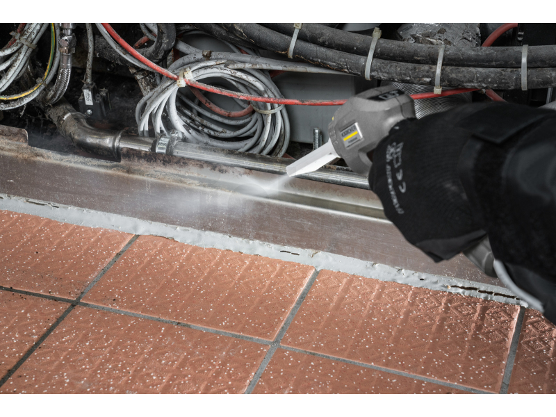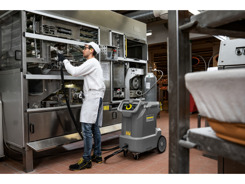 Spontánní čisticí práce se zařízením na tryskání suchého ledu při údržbě strojů nebo vozidel, při čištění ve výrobním procesu nebo při úpravě vozidla byly až dosud nemyslitelné, protože logistika suchého ledu byla pro krátkodobé aplikace příliš nákladná. To je nyní možné u IB 10/8 L2P, prvního zařízení na tryskání suchéým ledem na světě s integrovanou výrobou suchého ledu z kapalného CO₂. Díky inovativnímu postupu se pelety suchého ledu vyrábějí v případě potřeby z kapalného CO₂ - L2P znamená „Liquid-to-Pellet“. Protože kapalný CO lze skladovat v plynových lahvích prakticky neomezeně dlouho, je zabráněno obvyklé časově náročné logistice suchého ledu. Velmi nízká spotřeba stlačeného vzduchu stroje také významně snižuje požadavky na infrastrukturu. Zároveň jsou plně zachovány výhody technologie suchého ledu Kärcher. IB 10/8 L2P čistí velmi šetrně - také na složité kontury, jako jsou drážky, ložiska nebo drážky, a to i v případě silného znečištění. Spolehlivě se vyhnete zbytkům abraziva.