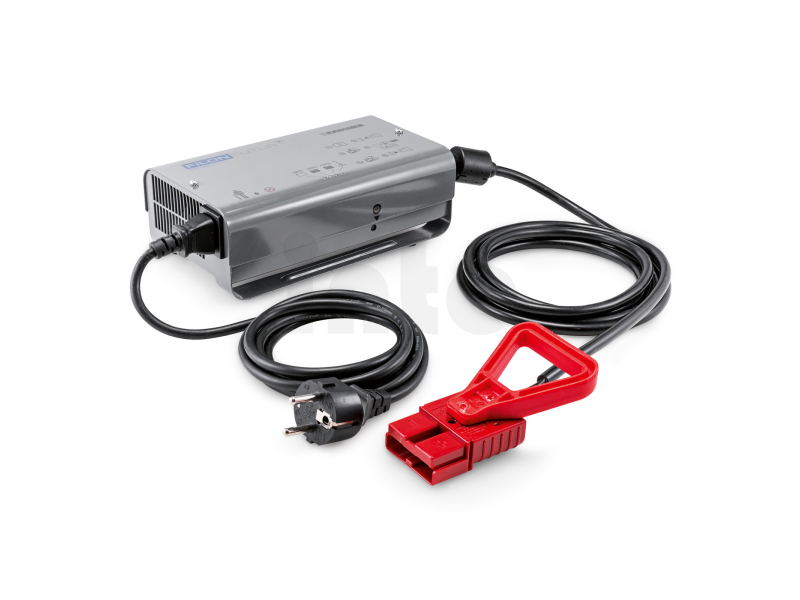 24 V nabíječka pro bezúdržbové baterie s kapacitou 70 až 105 Ah. Vhodná zástrčka pro naše podlahové mycí stroje s odsáváním BD 50/70 R Classic je součástí dodávky.