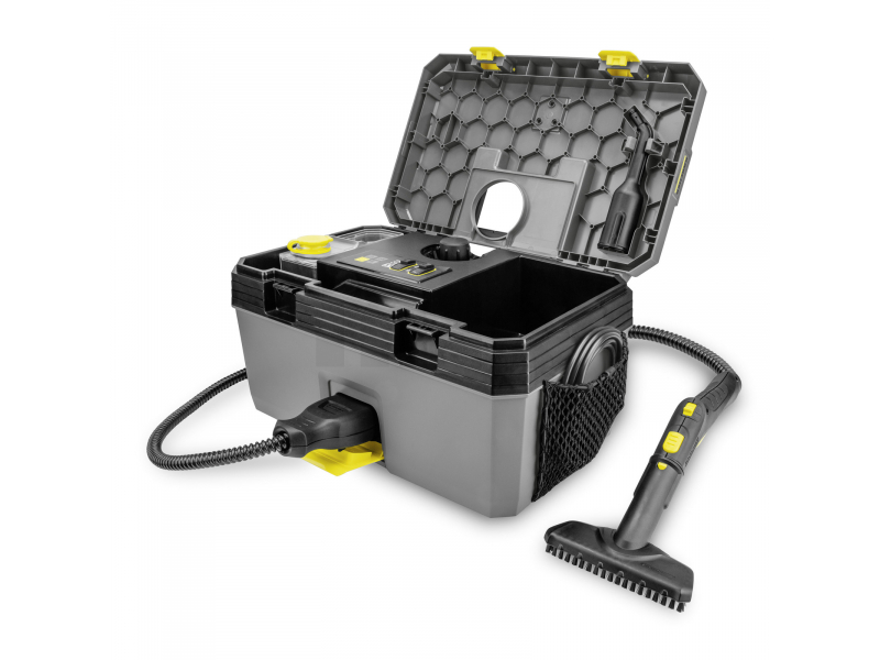 Díky jedinečné konstrukci all-in-one boxu je velmi kompaktní, robustní a odolný, je také rozsáhle vybavený a velmi snadno se používá. KÄRCHER parní čistič SG 4/2 Classic přesvědčí vynikajícími výsledky čištění, skvělá cena/ poměr výkonu a maximální efektivita. Lehký stroj, vážící pouhých 7,5 kilogramů, je nejkompaktnějším profesionálním parním čističem ve své třídě, je připraven k použití za pouhé 3 minuty a s tlakem páry 4 bary nabízí více než dostatečné rezervy pro hloubkové čištění a sanitaci bez použití chemikálií. Pulty, dávkovací zařízení, dlaždice, varné desky, trouby a mnohé další jsou pečlivě vyčištěny přímo do té nejmenší skuliny – bez ohledu na úroveň znečištění. Ve zvláště odolných případech pomáhá připojitelná funkce VapoHydro s horkou vodou a účinně odstraňuje silné znečištění a mastnotu, nádržku na vodu lze kdykoli vyjmout a naplnit. Příslušenství jako parní hadice, ruční hubice, bodová tryska, Power hubice, kulatý kartáč, plochý kartáč, škrabka a kryt z mikrovlákna, to vše je uloženo přímo ve stroji – volitelně je k dispozici i podlahová hubice.