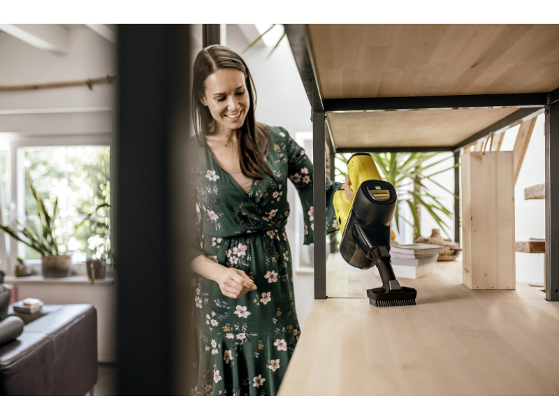 S AKU tyčovým vysavačem KÄRCHER VC 6 Cordless ourFamily budete mít radost z úklidu zaručenou. Vysavač na jedno nabití vydrží až 50 min. Mezi mnoho chytrých funkcí patří vyprázdnění nádoby na prach jedním kliknutím, funkce boost zajišťující vyšší výkon, ergonomický design pro čištění na těžko dostupných místech a LED světla na aktivní podlahové hubici. Díky nim bude Váš úklid efektvnější neboť ihned uvidíte případný prach. Mezi další výhody patří tichý chod, samostatný nástroj na čištění filtru a snadno čitelný displej stavu nabití baterie, který kdykoli zobrazuje aktuální stav. Nechybí ani praktická funkce Power Lock (trvalé zapnutí vysavače), která odstraňuje nutnost neustále držet zapínací tlačítko. Výkonný bezuhlíkový motor o výkonu 250 W v kombinaci s 25,2 V baterií o kapacitě 2,5Ah vám zajistí dostatečný výkon pro Váš úklid. Vysavač je dodáván včetně velmi praktického držáku na zeď s integrovanou nabíječkou.