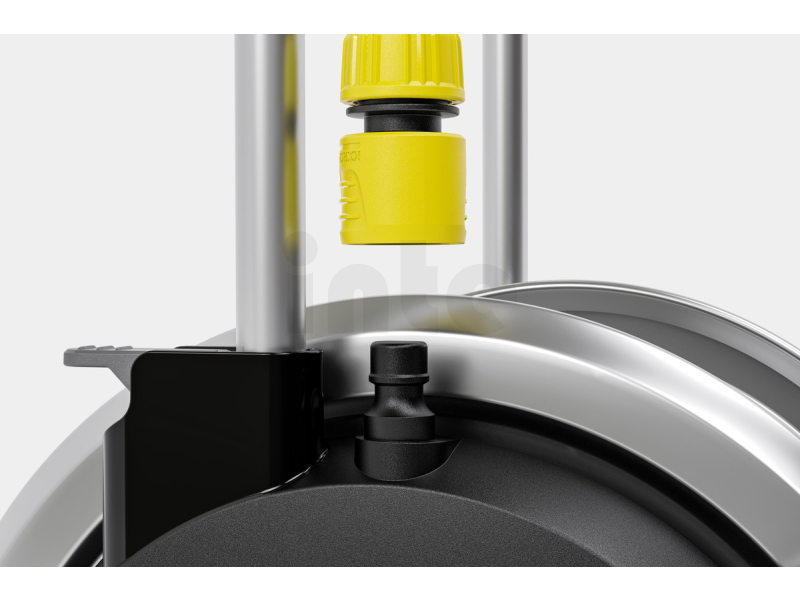 Extra široká základna a nízké těžiště vozíku poskytují maximální stabilitu. Díky úhlové přípojce a ochraně proti zkroucení hadice je zajištěn maximální průtok vody bez zalamování hadice.