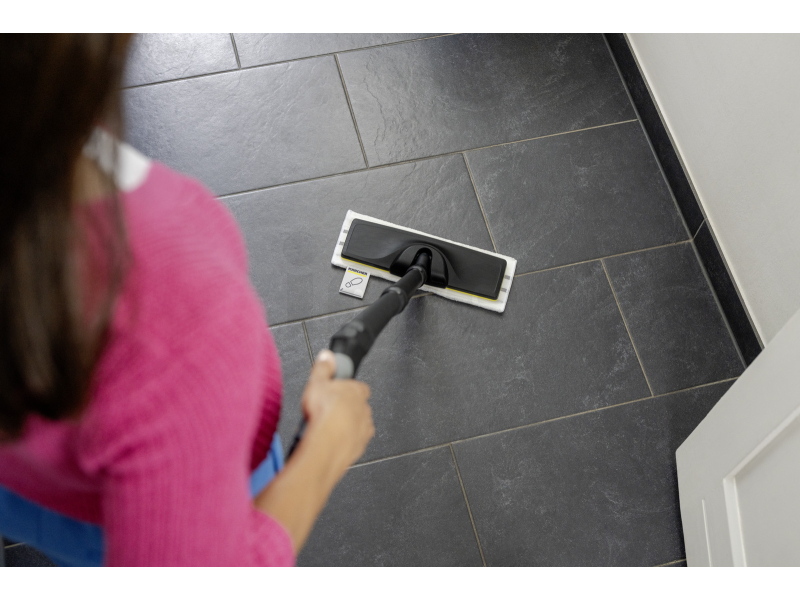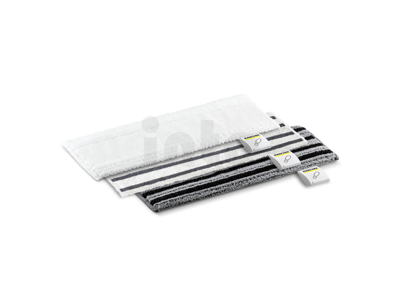 Sada utěrek na čištění podlah KÄRCHER EasyFix se skládá ze tří různých hadříků, které jsou určeny pro hygienické čištění podlah pomocí parního čističe. Utěrka Sensitive je ideální pro citlivé, utěsněné podlahy díky své snížené propustnosti páry. Utěrka Ultra Abrasive má vyšší obsah abrazivních vláken, což usnadňuje odstraňování odolných nečistot. Utěrka Abrasive podporuje odstraňování nečistot pomocí abrazivních vláken a zároveň nabízí vynikající zachycení nečistot díky dalším měkkým textilním částem, což je užitečné například při vytírání po čištění utěrkou Ultra Abrasive. Díky systému háčků a smyček lze utěrky snadno a rychle připevnit k podlahové hubici parního čističe: stačí přitisknout utěrku na čištění podlahy k podlahové hubici EasyFix. Během práce zůstane utěrka bezpečně na svém místě. Po skončení čištění lze použitou utěrku z podlahové hubice EasyFix sejmout bez kontaktu se špínou: stačí sešlápnout patku na utěrce a vytáhnout podlahovou hubici nahoru a pryč od ní.