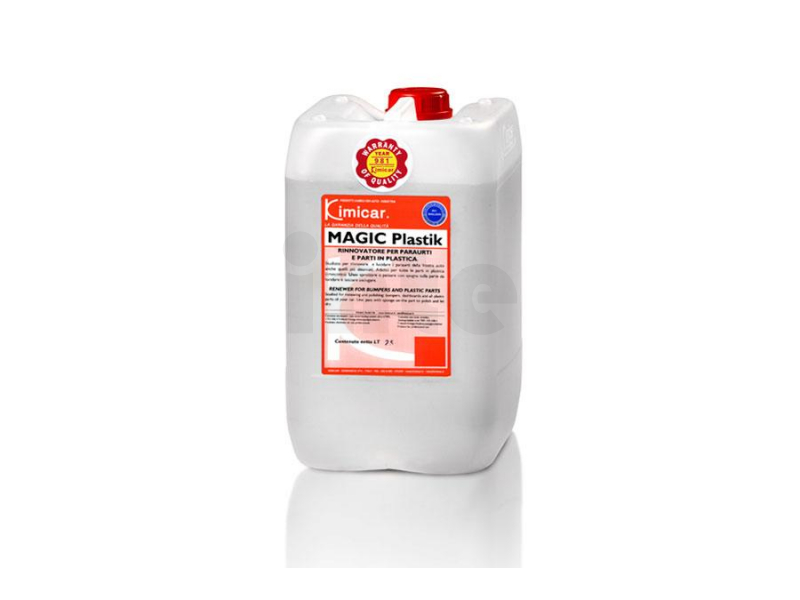 Kimicar Magic plastik je vysoce účinný ochranný leštící přípravek. Výrobek je určený k obnově a vyleštění nárazníků a bočních stran vozů i těch bělených, což je činí odolnými vůči povětrnostním vlivům. Přípravek je výjimečný pro všechny plastové díly včetně přístrojové desky. S tímto výrobkem můžete po mytí získat vynikající výsledky i na pneumatikách a motorech. Použití: Používá se také pro motocykly, včetně plastových obalů, stanů, karavanů atd. Přípravek je bohatý na změkčovadla a leštidla, má ochranný účinek a obnovuje původní vzhled povrchů, což je činí odolnými proti slunci a živlu. Svými nutričními vlastnostmi zabraňuje vzniku prasklin na povrchu kůže.