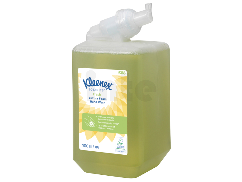 Řada pěny na ruce Kleenex Botanics je naše vůbec nejluxusnější mýdlo na ruce, obohacené o výtažky z aloe vera a okurky, navržené tak, aby uživatelům zanechávalo pocit svěžesti a regenerace po mytí rukou. Tyto mýdlové náplně Kleenex jsou hypoalergenně testovány, s jemným složením navrženým pro časté mytí rukou a bezpečné pro citlivou pokožku, aby pomohly podporovat dodržování hygieny rukou na pracovišti. Tento mycí prostředek na ruce Kleenex je obohacen o zvlhčovače a hydratační přísady, které zanechávají vaše ruce zvlhčené.