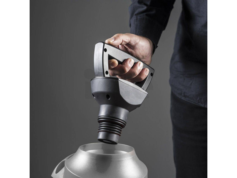 Hlavní výhodou je automatické zapínání a vypínání při dosažení požadovaného tlaku, což šetří energii i komponenty čerpadla a zajišťuje plynulý provoz. EPDM těsnění garantuje vysokou odolnost proti běžným chemikáliím a dlouhou životnost i při intenzivním používání. Přehled o stavu nabití poskytuje dvoubarevný LED indikátor, zatímco USB-C nabíjení (kabel součástí balení) zajišťuje snadnou a rychlou údržbu zařízení.