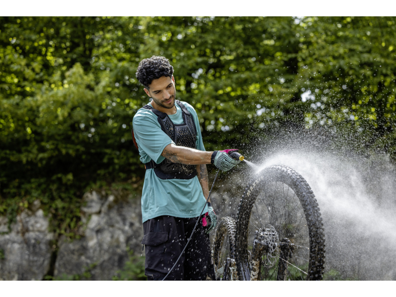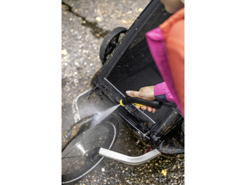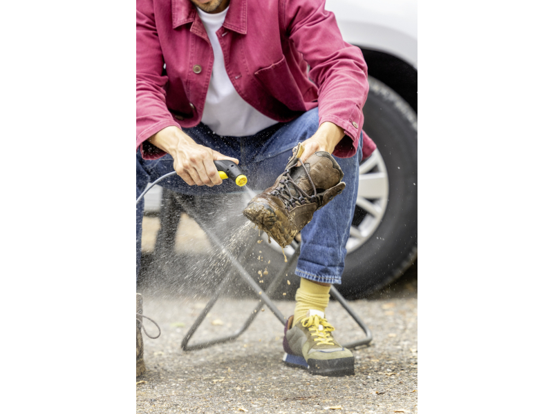 - Výhoda nízkého tlaku: účinné a zároveň velmi šetrné čištění, ideální pro citlivé povrchy. Standardní tryska s plochým proudem spolehlivě a přesně vyčistí i těžko přístupná místa. Kuželová tryska je vhodná pro ještě citlivější čištění, například psích tlapek.