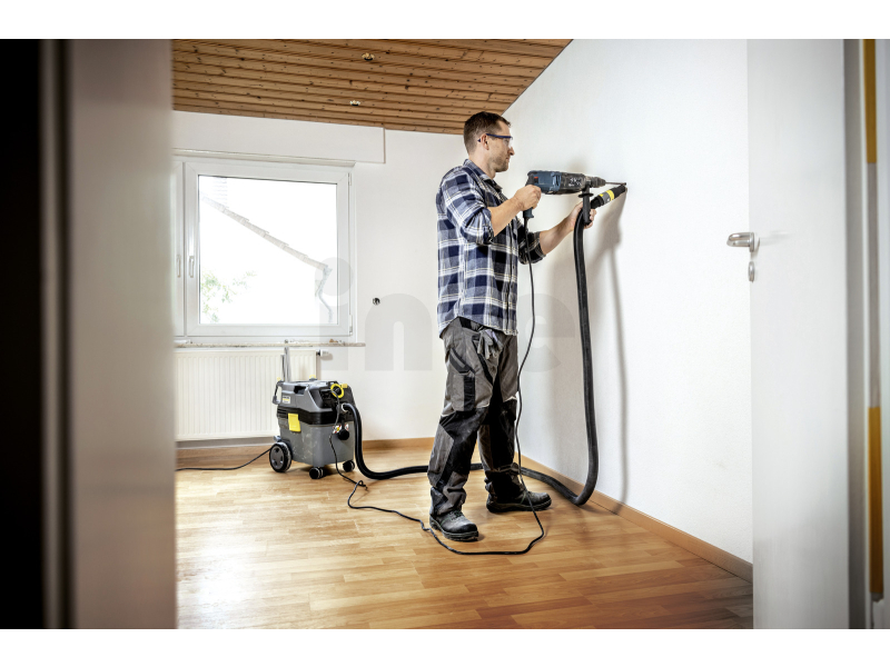 Vysavač je vybaven kompletním antistatickým systémem s vodivým příslušenstvím, který chrání uživatele před elektrostatickými výboji. Integrovaná zásuvka pro elektrické nářadí s automatickým startem umožňuje přímé odsávání během práce s elektrickými nástroji, což snižuje prašnost a zvyšuje efektivitu práce.