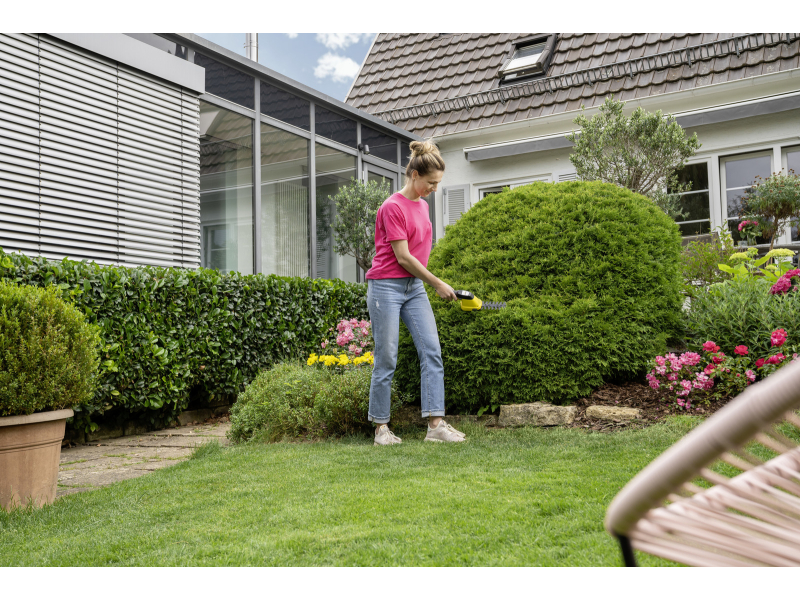 Nůžky na trávu KÄRCHER GSH 2 Plus Battery jsou vybaveny 8 cm širokým nožem, který umožňuje snadné a precizní stříhání okrajů trávníku podél cest, záhonů nebo terasy. K tvarování zahradních keřů slouží nůž na keře o délce 11 cm.