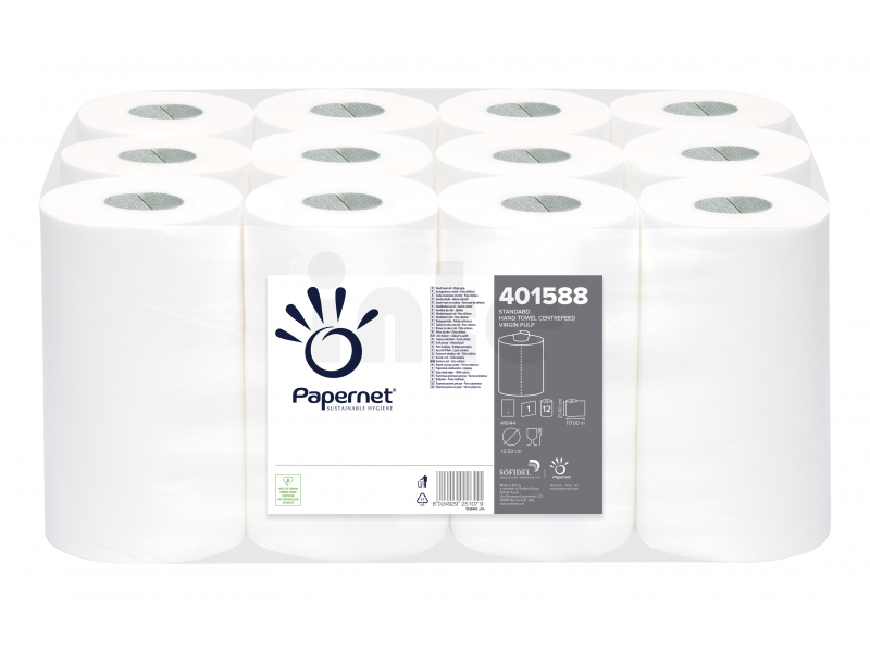 PAPERNET - Bílý ručník v roli CENTREFEED STANDARD MINI, 1 vrstvý, 117 m, 12 rolí - 401588