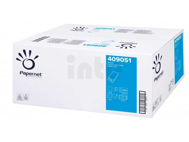 PAPERNET - Bílý skládaný ručník do "V" SPECIAL, 2 vrstvý, 250 útržků, 3750 ks = 1 karton - 409051
