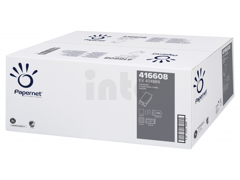 PAPERNET - Přírodní skládaný ručník V STANDARD, 1 vrstvý, 250 útržků, 5000 ks = 1 karton - 416608