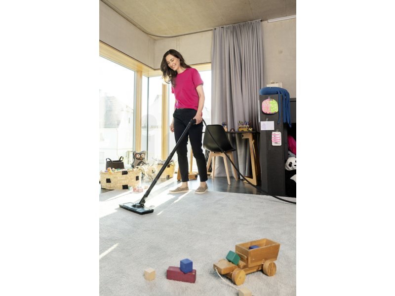 - Multifunkční příslušenství - Čištění různých ploch dle potřeby pomocí podlahové a ruční hubice či kulatého kartáčku. Jednoduché osvěžení kobercových podlah díky kluzáku na koberce.