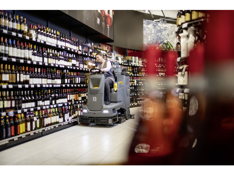 Výkonný a spolehlivý: podlahový mycí stroj s odsáváním B 110 R se 160 Ah železo-fosfátovou baterií, integrovanou nabíječkou baterií, hlavou kotoučového kartáče a dávkovacím systémem čistícího…