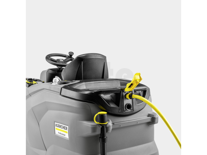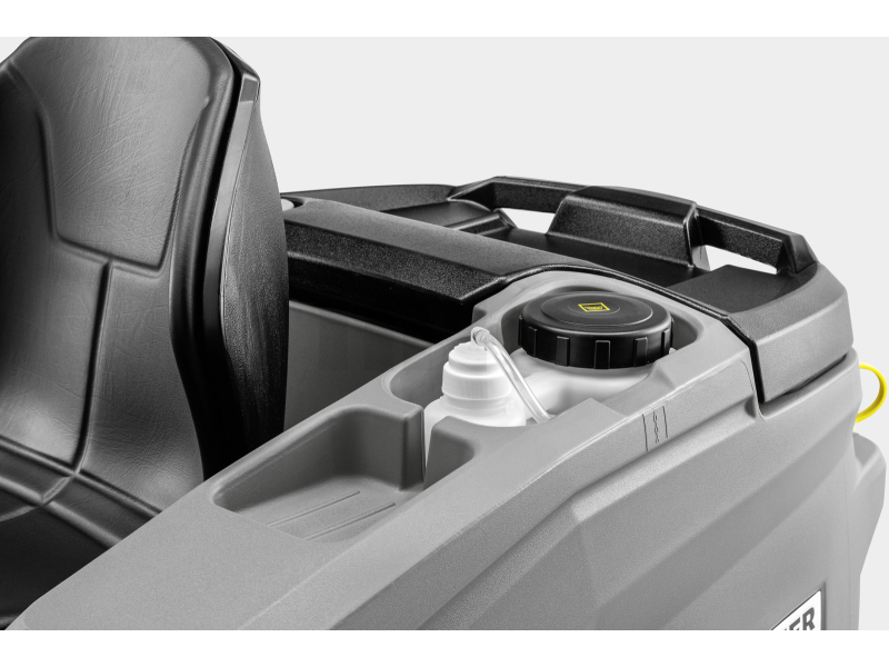 Stroj je vybaven výkonnou AGM baterií 220 Ah, funkcí automatického plnění Auto-fill pro rychlé naplnění nádrže na čistou vodu a manuální stříkací pistolí pro snadné čištění nádrže na odpadní vodu. Systém dávkování čisticího prostředku DOSE zajišťuje efektivní spotřebu chemie a snižuje provozní náklady.
