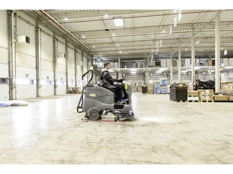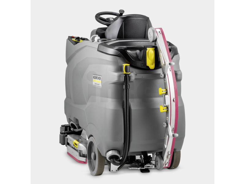 KÄRCHER B 150 R Bp Pack 220Ah AGM, DOSE, 2xRI, Mop + R85 je profesionální podlahový mycí stroj s posedem a odsáváním, ideální pro ekonomické hloubkové a údržbové čištění větších ploch. Díky nové hliníkové válcové kartáčové hlavě s integrovanou funkcí před-zametání poskytuje vynikající výsledky čištění při minimální spotřebě zdrojů. Pracovní šířka 85 cm a nádrž o objemu 150 l umožňují plošný výkon až 5 100 m²/h.